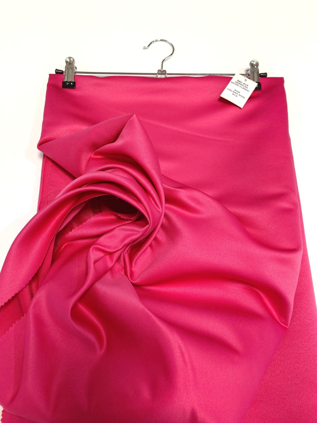 Američki saten klasični boja Ciklama Roze ili Mat saten savršeno drži oblik, ima mat površinu, koju karakteriše visoka otpornost na habanje. Ovaj saten je gust, stabilan u obliku, ne sadrži likru, zbog čega se ne rasteže. Ne prosijava se. Nije skup. Koristi se u šivenju proizvoda koji zahtevaju zadržavanje oblika.