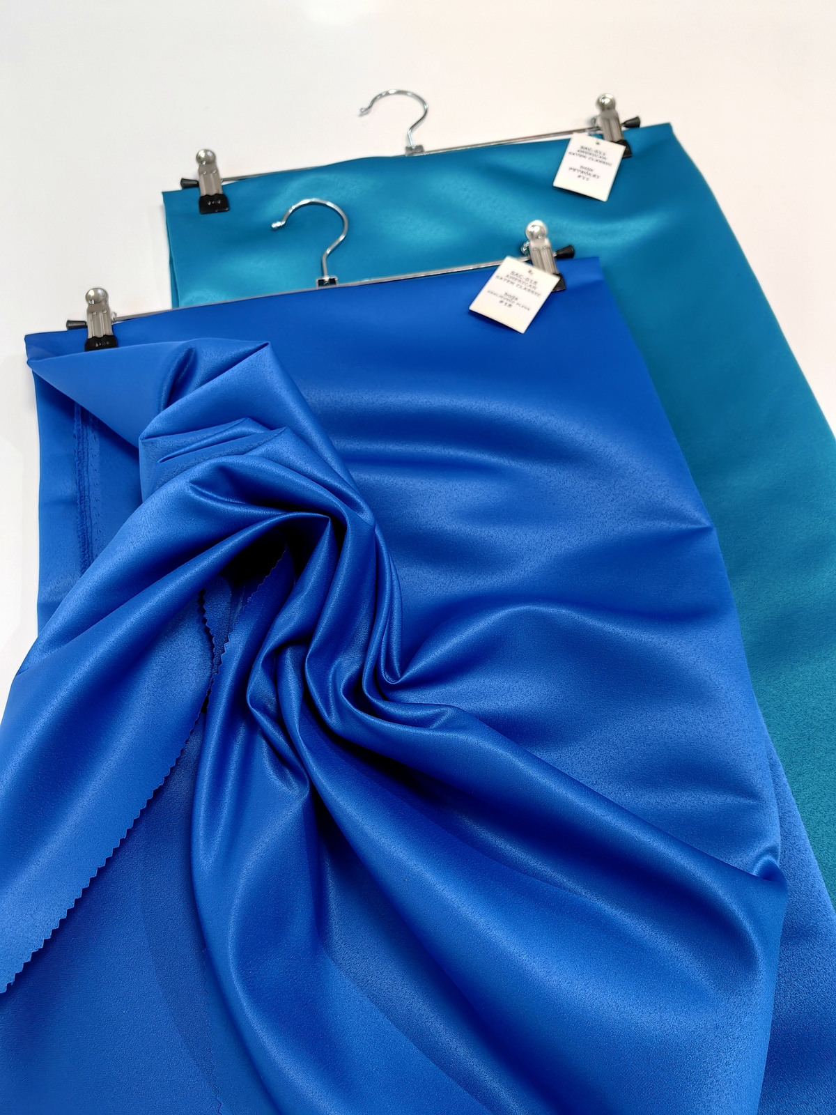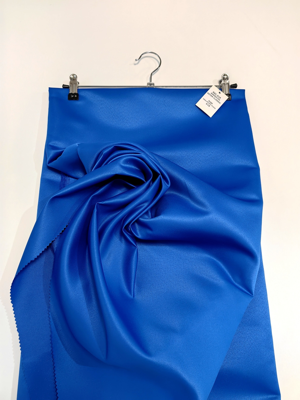 Američki saten klasični boja Kraljevsko Plava ili Mat saten savršeno drži oblik, ima mat površinu, koju karakteriše visoka otpornost na habanje. Ovaj saten je gust, stabilan u obliku, ne sadrži likru, zbog čega se ne rasteže. Ne prosijava se. Nije skup. Koristi se u šivenju proizvoda koji zahtevaju zadržavanje oblika.