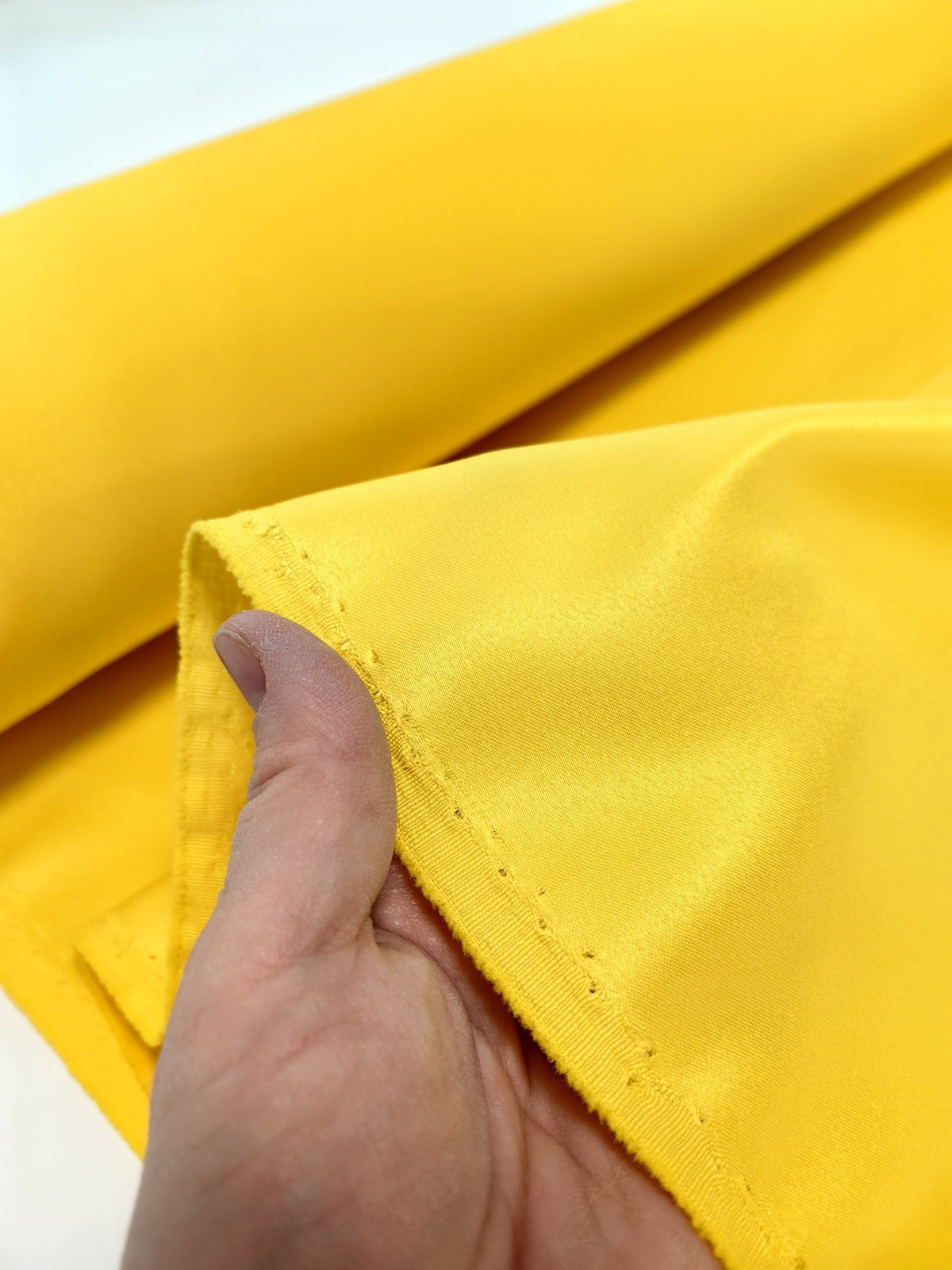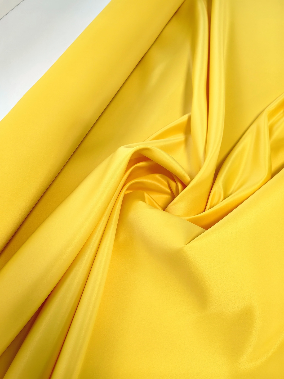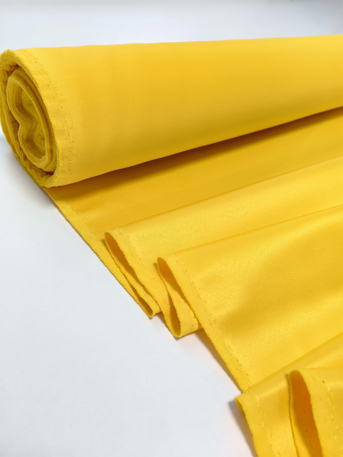 Američki saten klasični boja Žuta ili Mat saten savršeno drži oblik, ima mat površinu, koju karakteriše visoka otpornost na habanje. Ovaj saten je gust, stabilan u obliku, ne sadrži likru, zbog čega se ne rasteže. Ne prosijava se. Nije skup. Koristi se u šivenju proizvoda koji zahtevaju zadržavanje oblika.