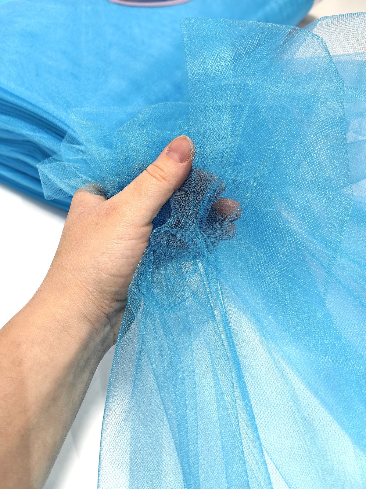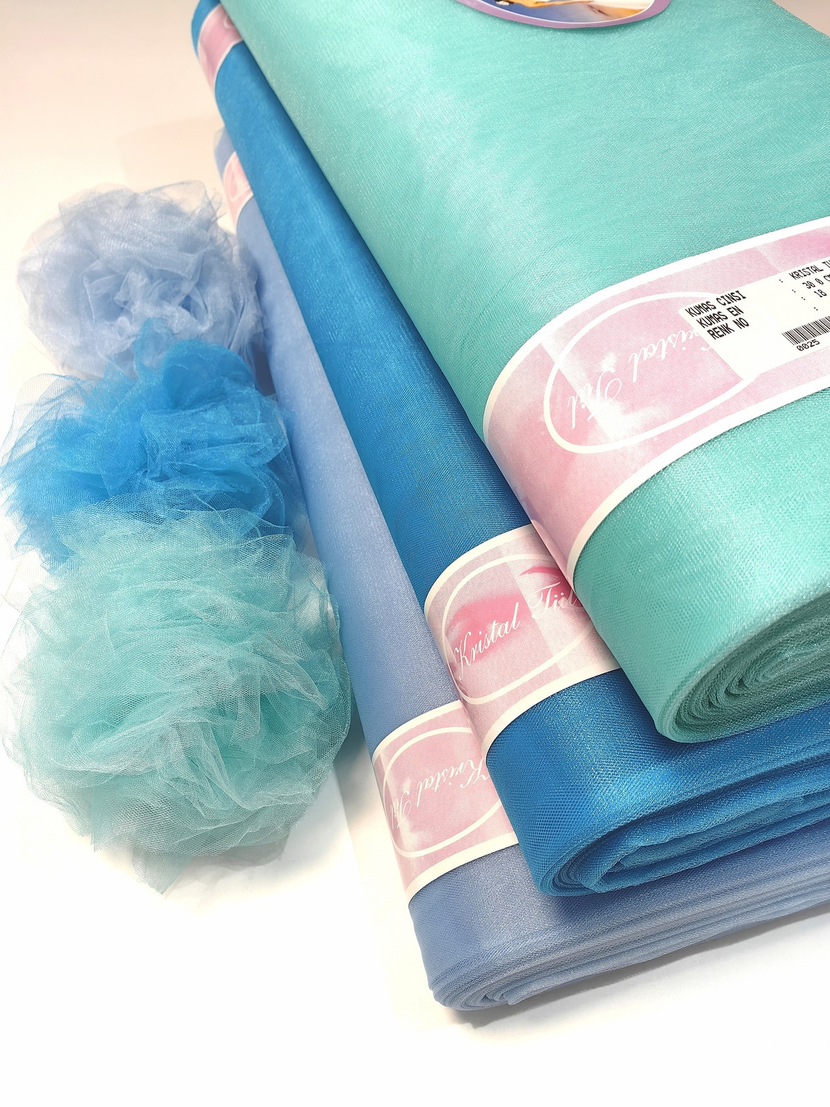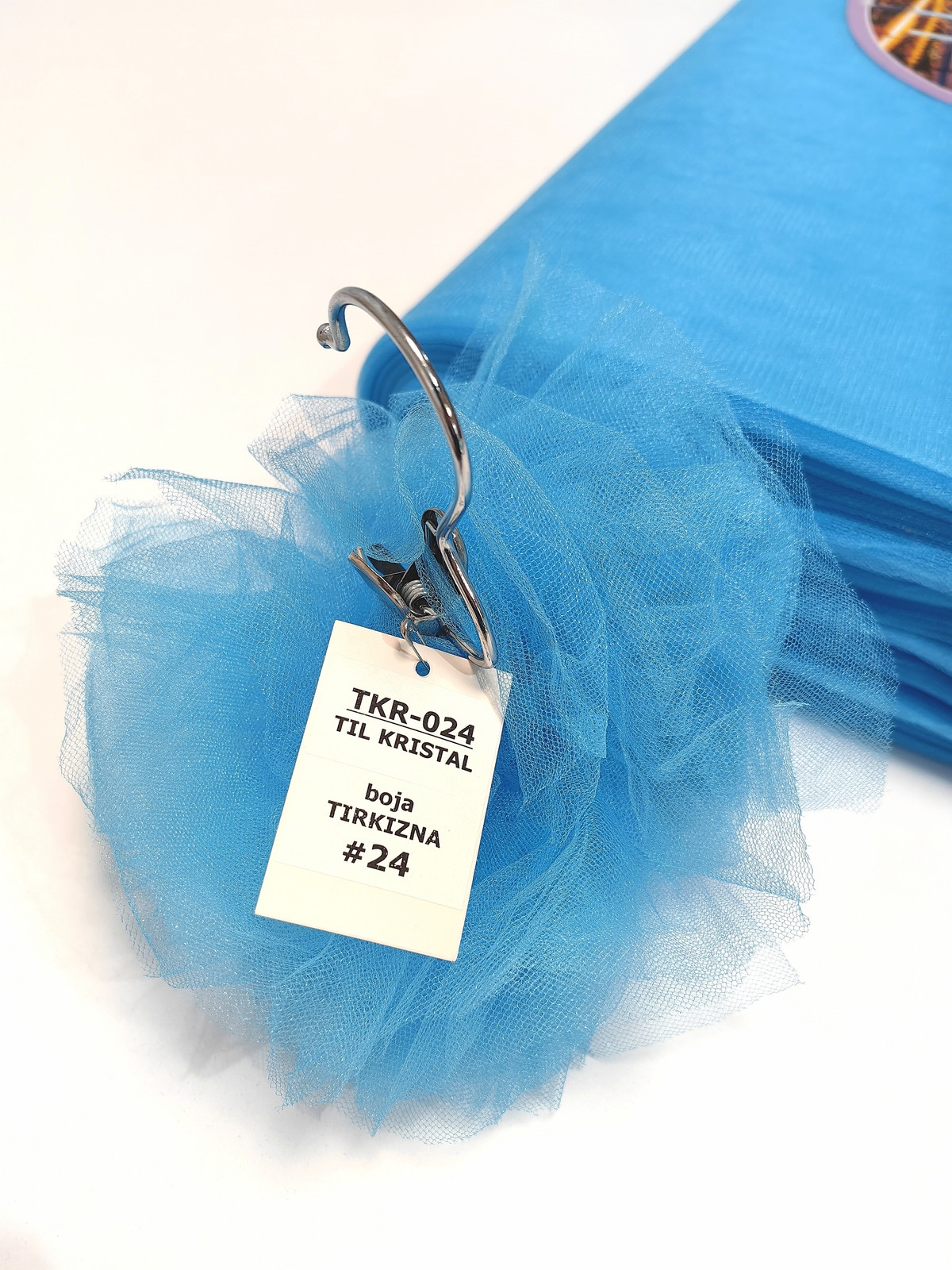 Til Kristal boja Tirkizna upadljiv, privlačan, sa primetnim kristalnim sjajem. Savršeno drži oblik, nje skup. Najviše se koristi za dekor venčanja, proslava i automobila, za kostime, maskenbal, baletske pačke. Takođe se koristi za donje suknje ispod teških tkanina.