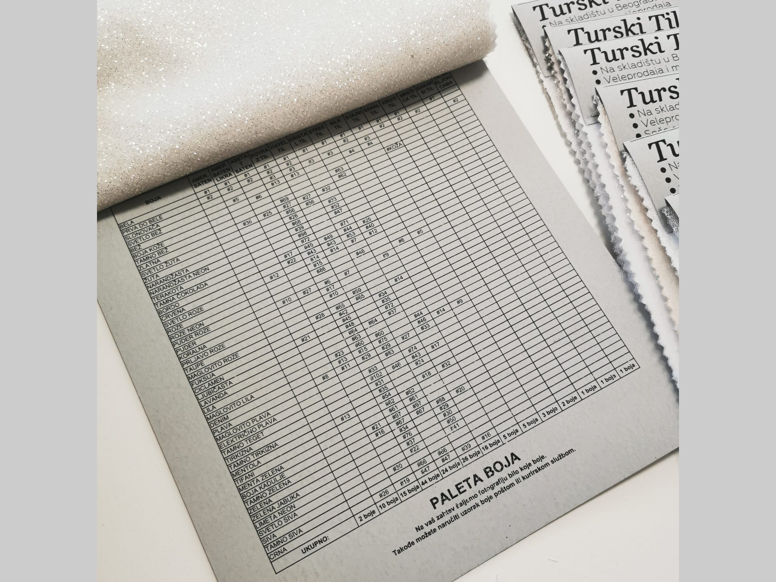Naša prodavnica tkanina može poslati uzorke. Uzorak tkanine je katalog koji sadrži sve tkanine tkanine u 1 boji. Katalog tkanina uključuje i paletu boja u obliku tabele, koja pokazuje u kojim bojama je svaka tkanina dostupna.